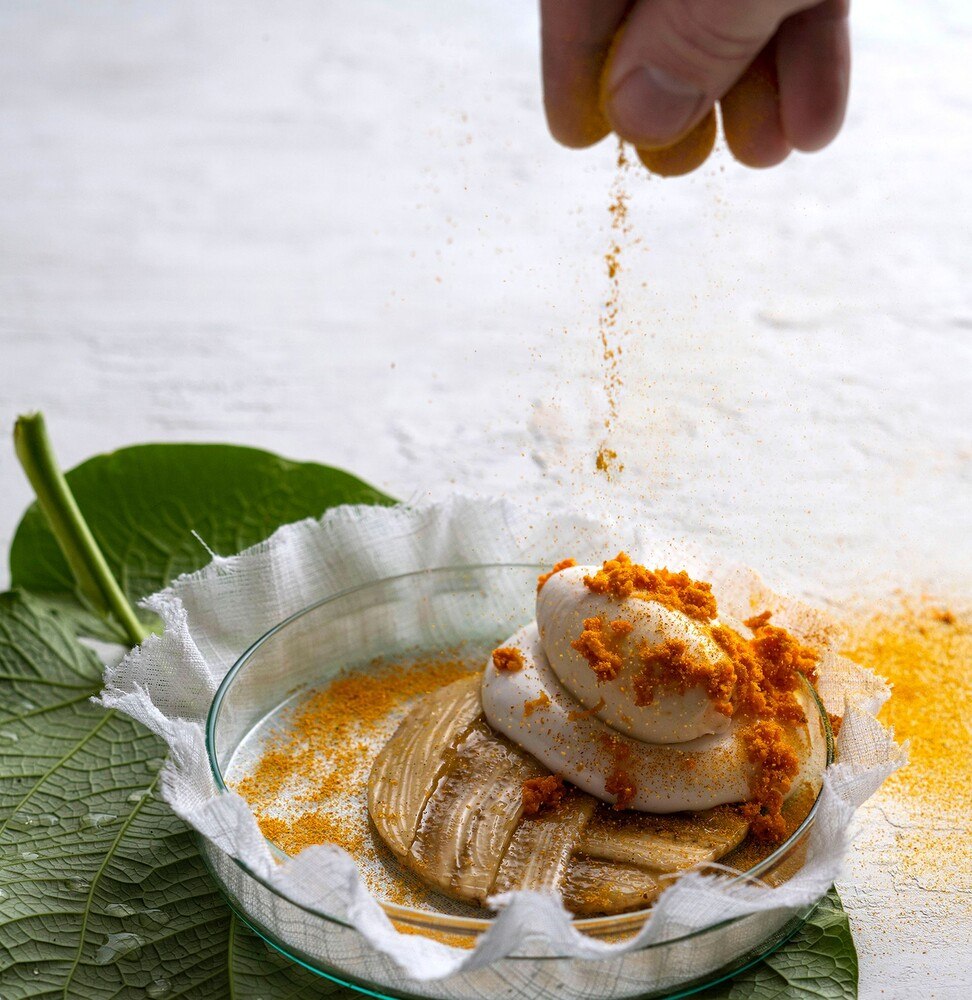 Klemens Schraml: Die Natur gibt viel vor, diese Vorgaben zu interpretieren und den Menschen zu zeigen, ist genau das, was ich versuche. Das hat viel mit Beobachten zu tun. Die Forellen laichen in den Bächen, während der Winter langsam Einzug hält: „Kräutertoast, die ersten Forellen und die letzten Kräuter“. Die Marone sieht äußerlich einem Seeigel sehr ähnlich. Das reicht meiner Neugier, um es zu probieren. Beide Lebensmittel haben ihren „besten Moment“. Wenn in Japan die Seeigel am besten sein sollen, gibt es im Tessin hervorragende Maronen.