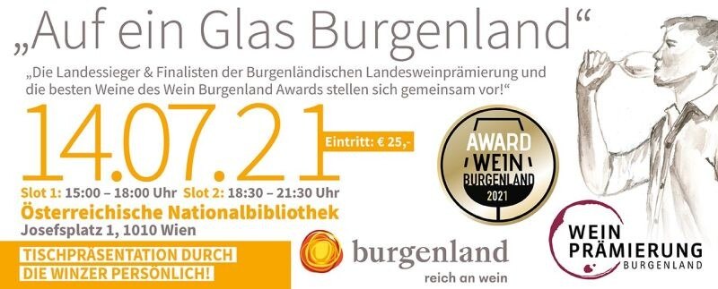 Verkosten Sie gemeinsam mit den burgenländischen Winzern und Winzerinnen am 14. Juli von 15 – 18 Uhr in der Österreichischen Nationalbibliothek die besten 5 Weine aus allen 17 Kategorien der burgenländischen Landesweinprämierung und die besten 3 Weine aus den 11 Kategorien des Wein Burgenland Awards.